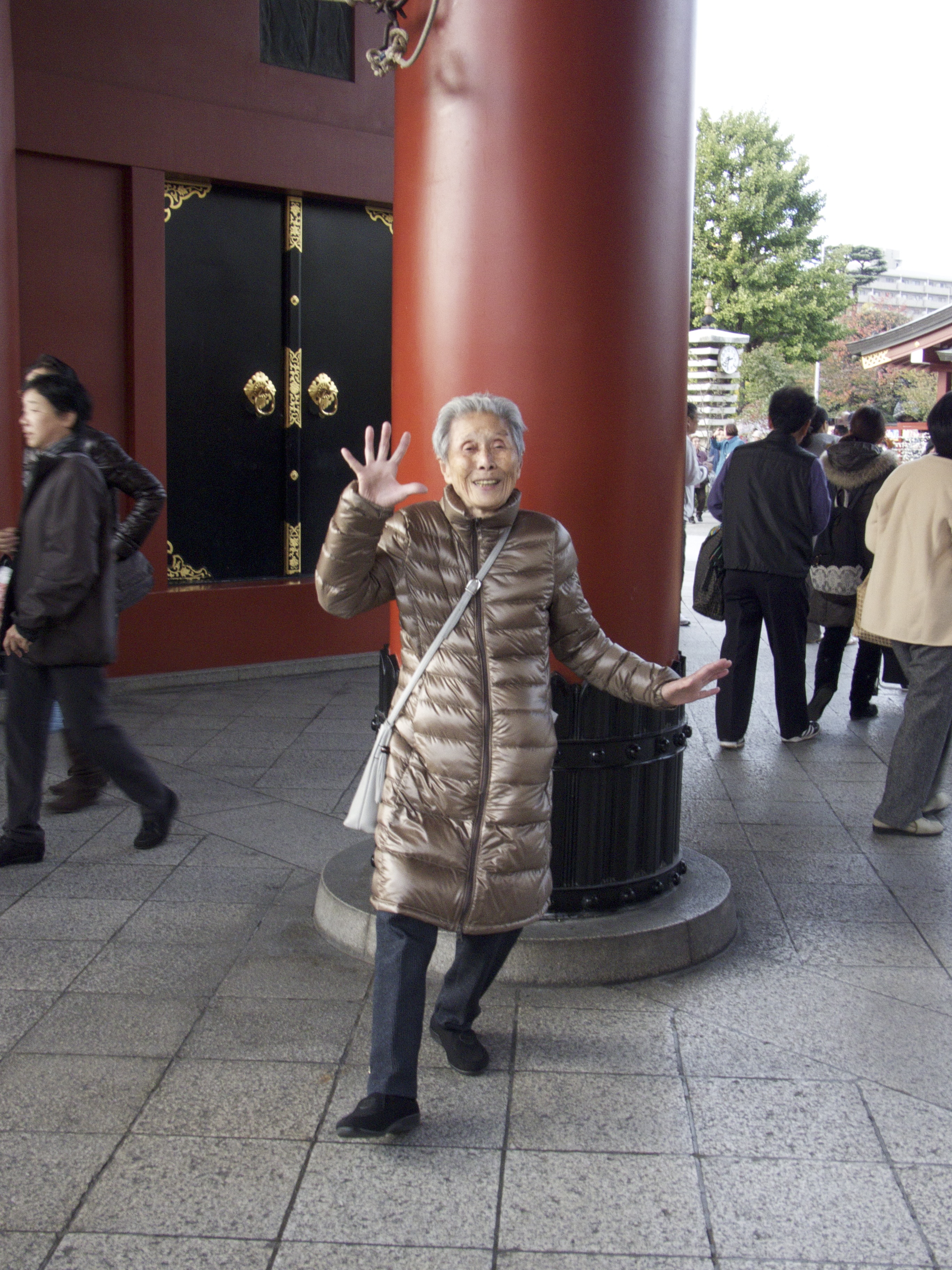 祖母は終始ご機嫌で、境内前の雷門前でポーズをきめて写真を撮っていると、知らない人がいっぱい集まってきて、
